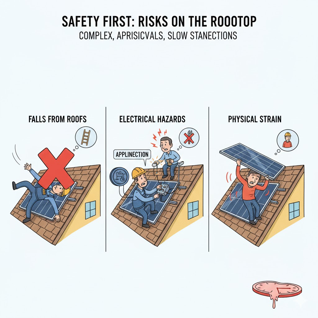 Installing solar panels is a hands-on, physically demanding job that comes with inherent safety risks. Falls from roofs are a primary concern, alongside electrical hazards and injuries from lifting heavy equipment.