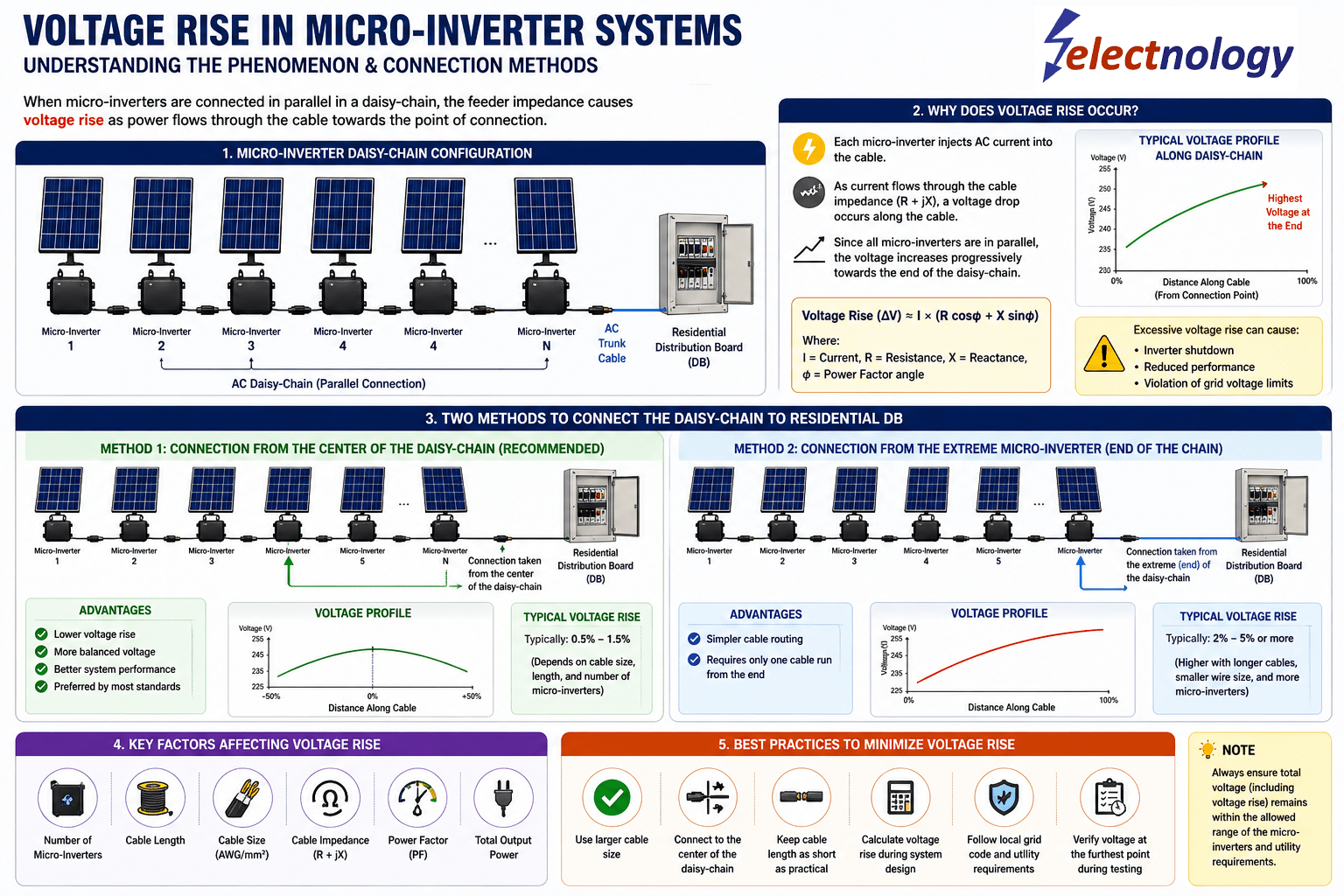 📌 In micro-inverter systems, voltage rise is not just about cable size — connection topology matters significantly.
